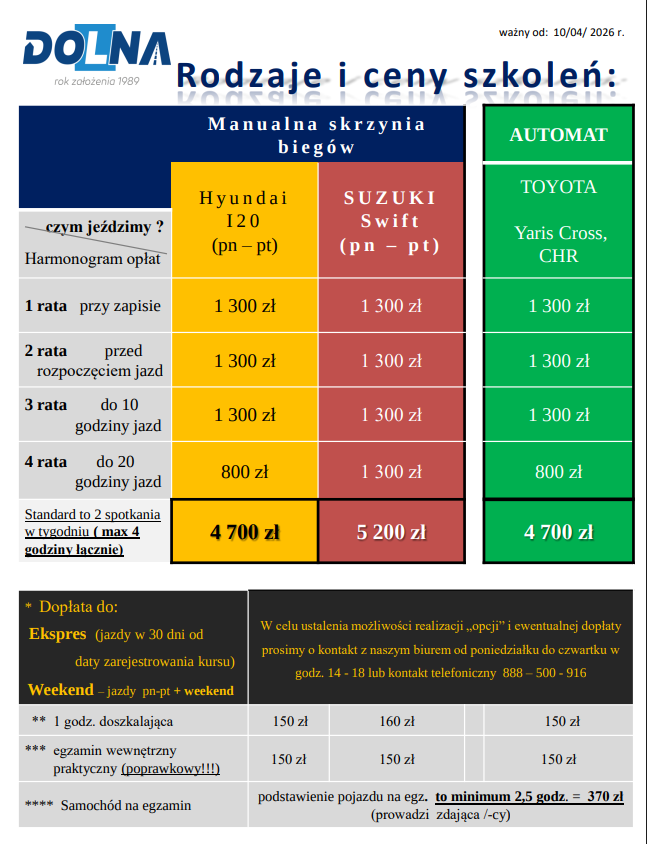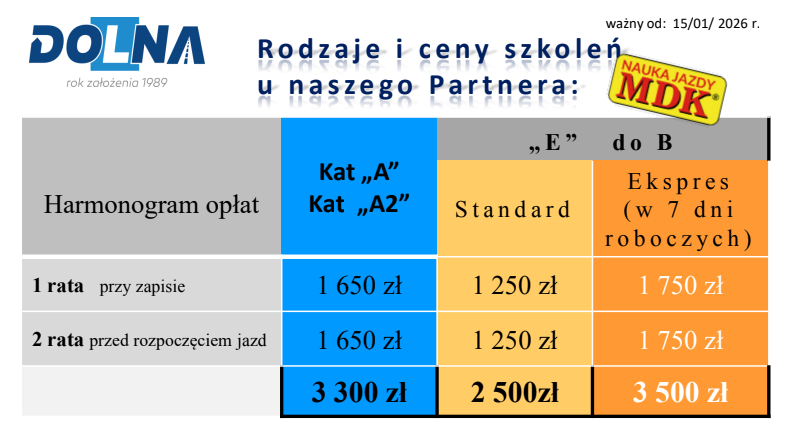 Jesteśmy szkołą z ponad 35 letnimi tradycjami oraz wyszkolonymi dziesiątkami tysięcy kierowców. Staramy się, by oferowane przez nas usługi dawały klientowi zadowolenie i satysfakcję z zainwestowanych pieniędzy.
